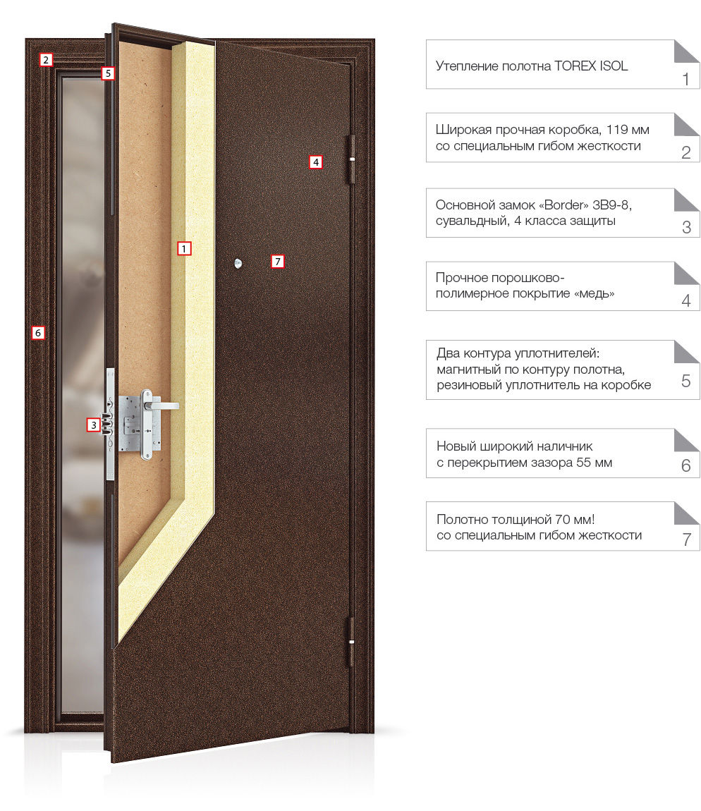 •Новая конструкция коробки: ее ширина увеличилась до 119 мм (для сравнения у «ULTRA» - 114мм), а также появилось ребро жесткости – специальный гиб по периметру полотна, который придает жесткость коробке. В результате даже в случае ошибки при монтаже (перетянули коробку, установили не в уровень) снижается риск неправильной работы замков. Клиенту это обеспечит комфортную эксплуатацию двери со всеми заявленными характеристиками в течение всего срока службы. А у Вас снизится кол-во рекламаций и повысится эффективность работы монтажных бригад при тех же затратах.